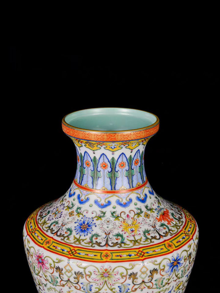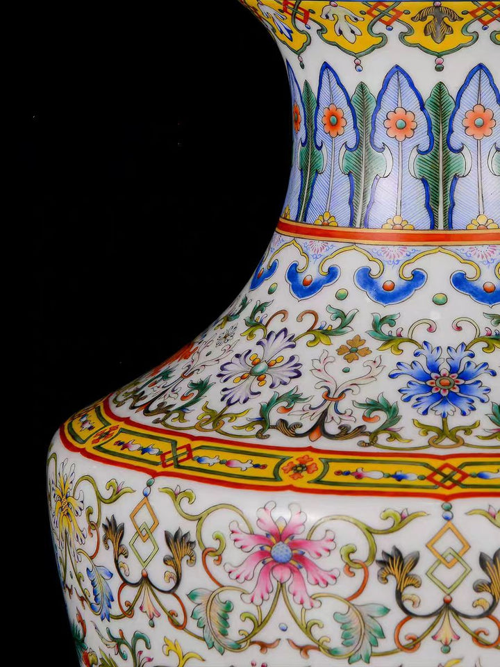 Famille Rose Enamel Handcrafted Ceramic Vase